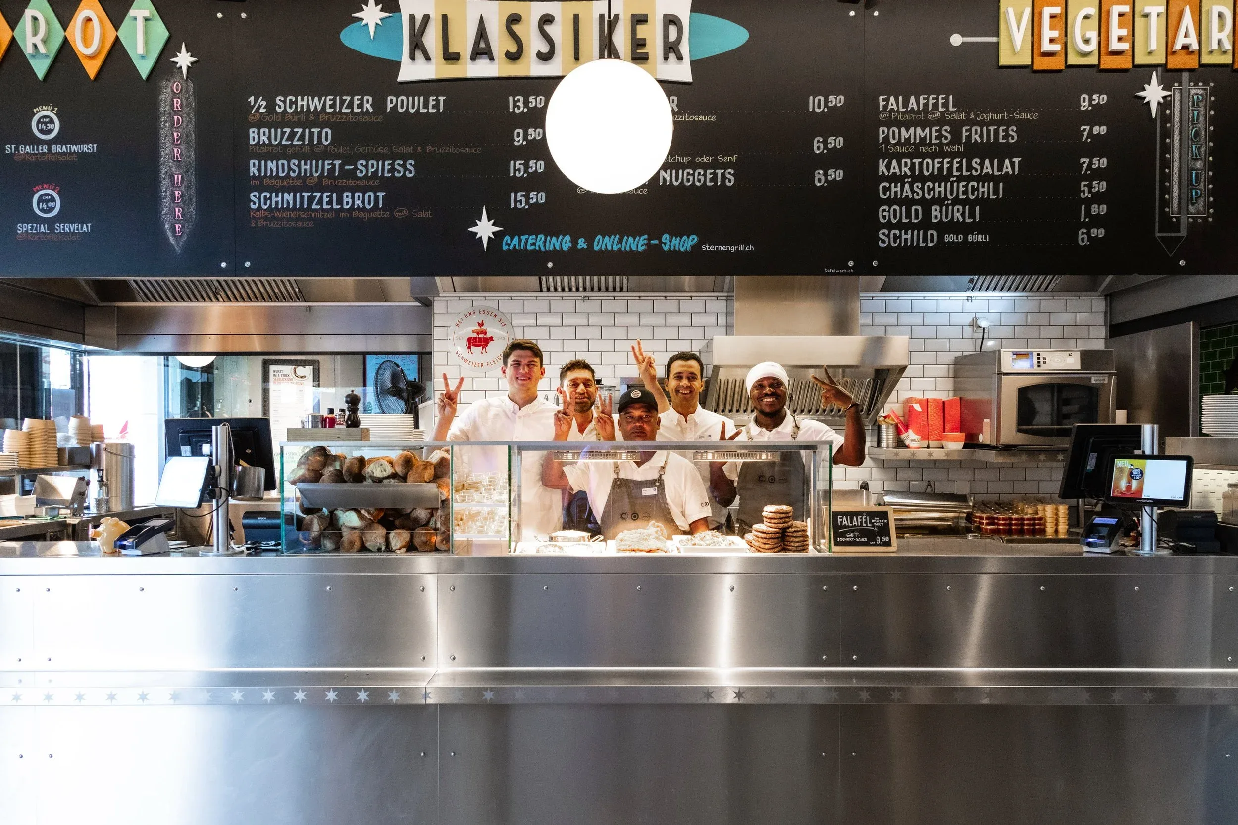 Am Zürcher Bellevueplatz zieht seit über 60 Jahren der Duft des Sternen Grills durch die Nacht. Hier treffen Welten aufeinander, um das Original zu geniessen: die perfekte St. Galler Bratwurst im knusprigen Gold-Bürli.