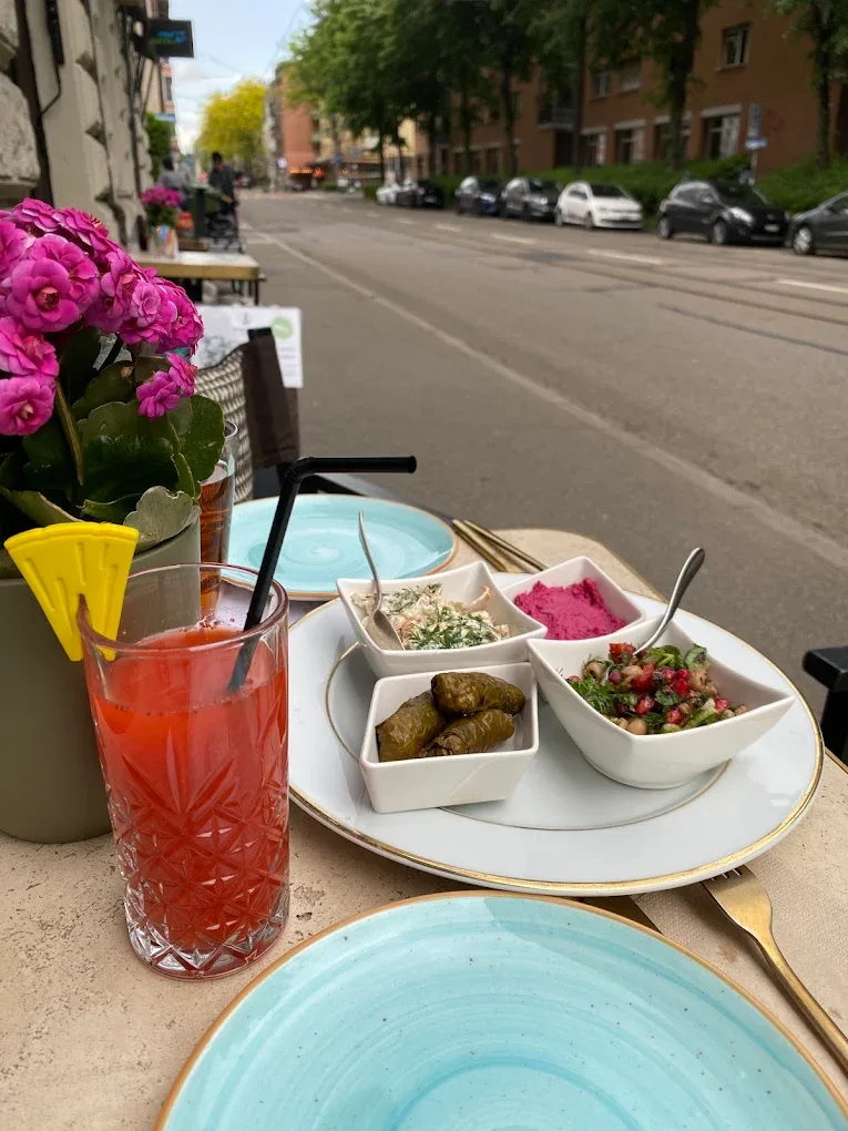 Die Speisekarte bei Züppe liest sich wie ein liebevoll kuratiertes Tagebuch anatolischer Genüsse mit Schweizer Akzenten. Sie beginnt mit einem vielseitigen Frühstück, bei dem das „Züppe Frühstück" mit Simit, Käse, Ei und Oliven eine reichhaltige Basis für den Tag legt – genau das Richtige für einen Zürcher Morgen. Zur Mittagszeit entfaltet sich das volle Spektrum: Weinblatt Sarma, köftige Hackbällchen mit Joghurt oder deftige, aber leichte Teller wie der „Züppe Teller" laden zum Verweilen ein. Die Gerichte werden stets von einer Auswahl an Saucen und Dips begleitet – eine persönliche Note, die den Gast zum Mitgestalter seines Geschmackserlebnisses macht. Selbst der Feierabend findet hier seinen Platz: Am Freitag öffnet Züppe bis in den Abend, und am letzten Sonntag des Monats verwandelt sich das Lokal in einen Brunch-Treffpunkt, der Gemeinschaft stiftet.
