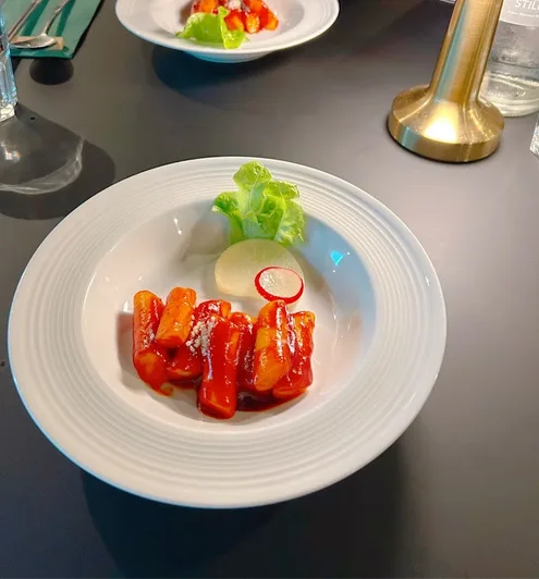 Das Herzstück des Akaraka-Erlebnisses ist das sorgfältig komponierte 6-Gänge-Korean-Dining, das von Live-Opernmusik begleitet wird. Es ist ein Menü, das Respekt vor der Tradition mit einer modernen, feinen Präsentation verbindet. Die Geschmäcker sind klar und intensiv: die scharfe Tiefe eines authentischen Kimchi, die süß-marinierte Umami-Fülle von Bulgogi, die knusprige Textur von Pajeon. Jeder Gang ist ein Satz in einer größeren Symphonie. Und während die Gäste die komplexen Aromen erkunden, durchzieht die kraftvolle oder zarte Stimme des singenden Gastgebers den Raum und schafft eine intime, fast magische Atmosphäre. Die warme Küche wird bis 21 Uhr zelebriert, danach darf der Abend in musikalischer Gemeinschaft ausklingen.
