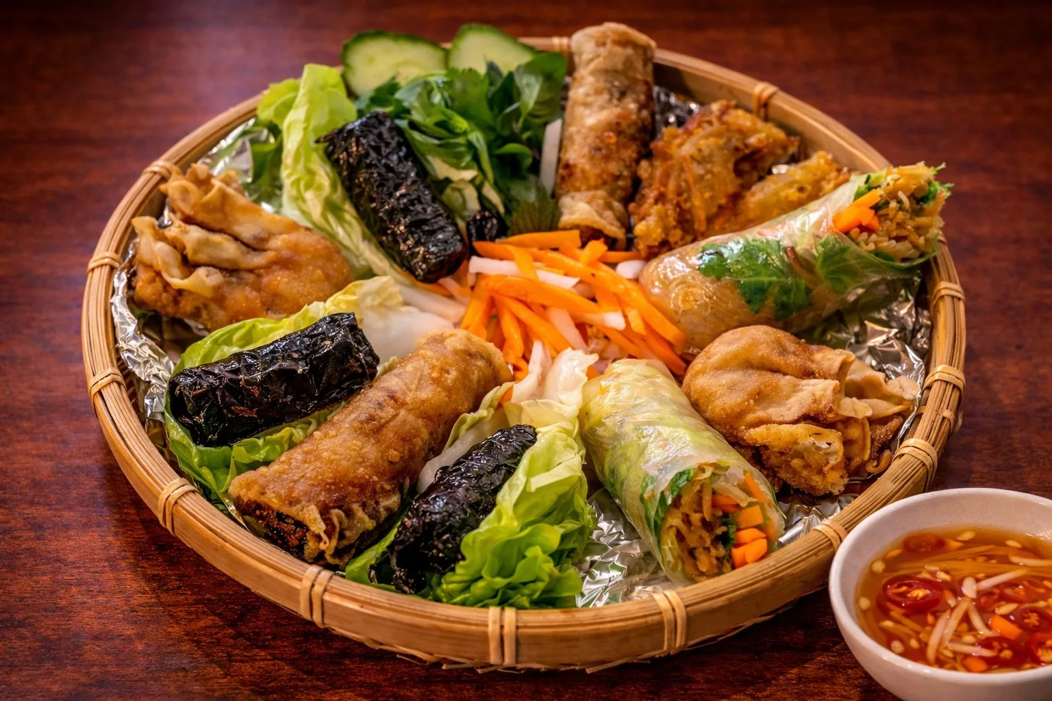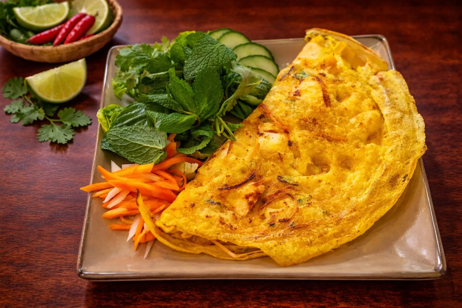 Die Speisekarte liest sich wie eine kulinarische Landkarte Vietnams. Im Zentrum steht natürlich die Pho – die nationale Nudelsuppe, deren klare, intensive Brühe hier über Stunden aus gerösteten Zwiebeln, Ingwer und einer geheimen Gewürzmischung gezogen wird, um eine unvergleichliche Tiefe zu entwickeln. Sie wird umspielt von knusprigen Frühlingsrollen (Chả Giò), gefüllt mit Glasnudeln und Pilzen, und bunten Reispfannen (Cơm), die mit mariniertem Tofu oder jackfruit begeistern. Jedes Gericht ist ein Fest der Texturen und Kontraste: knackiges Gemüse, weiche Nudeln, herb-frische Kräuter und umami-reiche Saucen. Der Gast erlebt eine Küche, die leicht und bekömmlich ist, aber niemals langweilig. Sie überrascht mit der Lebendigkeit der Aromen und dem handwerklichen Detail, das in jeder Garnitur steckt.