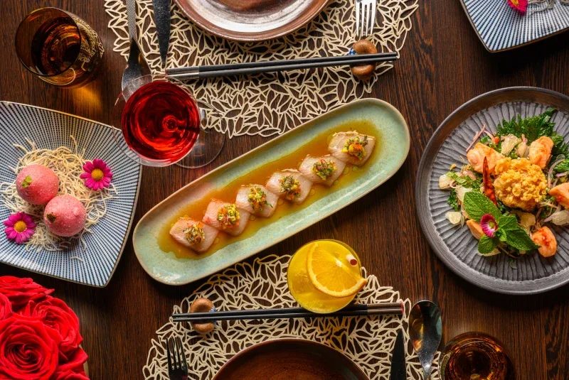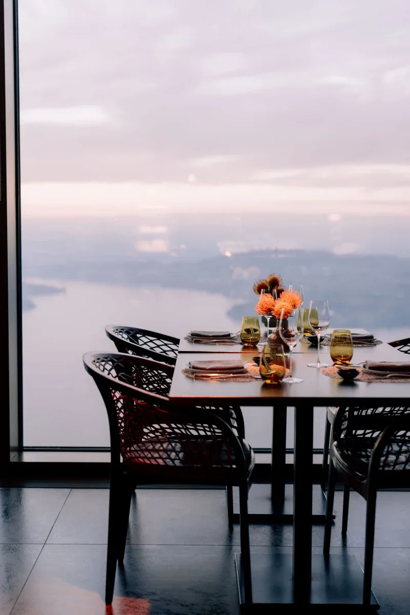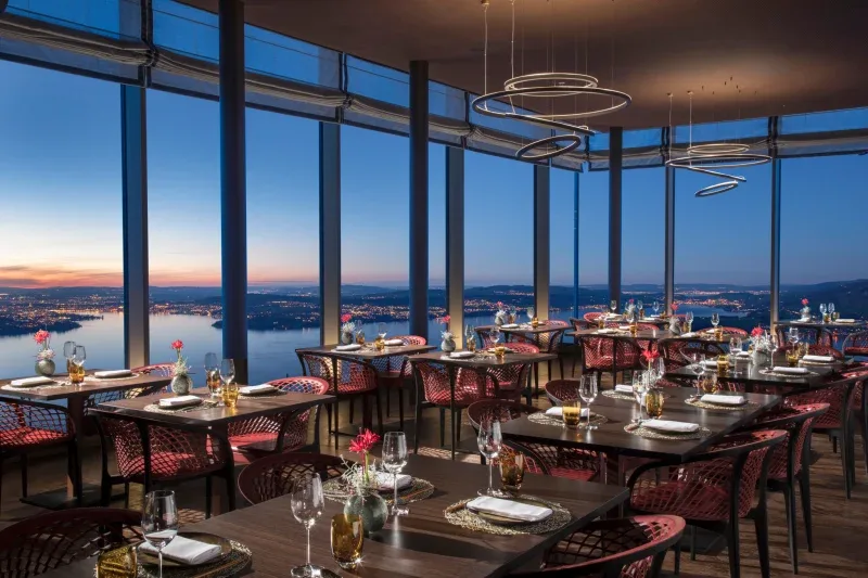 Die Menükarte ist eine Einladung zur Entdeckung. Ob die zarte Kunst des Sashimi, die würzige Tiefe eines indischen Currys oder die duftenden Kräuter der thailändischen Küche – jede Kreation folgt Rezepten, die die Köche aus ihren Heimatländern mitgebracht haben. Ein besonderes Highlight ist die Pekingente, ein Ergebnis langer Vorbereitung und Perfektionierung, die die handwerkliche Hingabe des Teams symbolisiert. Das Erlebnis ist rundum kosmopolitisch: Die „lebendige, weltoffene Atmosphäre", die sophistizierten Cocktails an der Bar und die atemberaubende Aussicht von der Terrasse schaffen einen unvergesslichen Moment des Genusses, 500 Meter über dem Seespiegel.